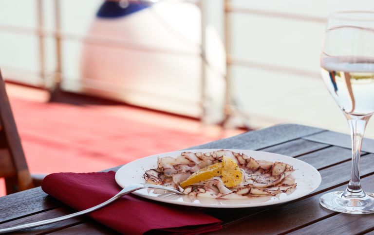 And as well as the wine, the coffee is also carefully selected: a professional machine, running h24, serves guests a blend of artisanal coffee (50% robusta, 50% arabica) sourced from Italian roasters. Produced according to the ancient Neapolitan tradition, the blend is packaged by Cooperativa Lazzarelle, a women-only cooperative established in 2010 inside the largest women’s prison in Pozzuoli (Naples). Learn more about coffee on board