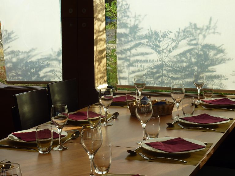 You can enjoy breakfasts and dinners in the cozy and bright restaurant hall with large panoramic windows.