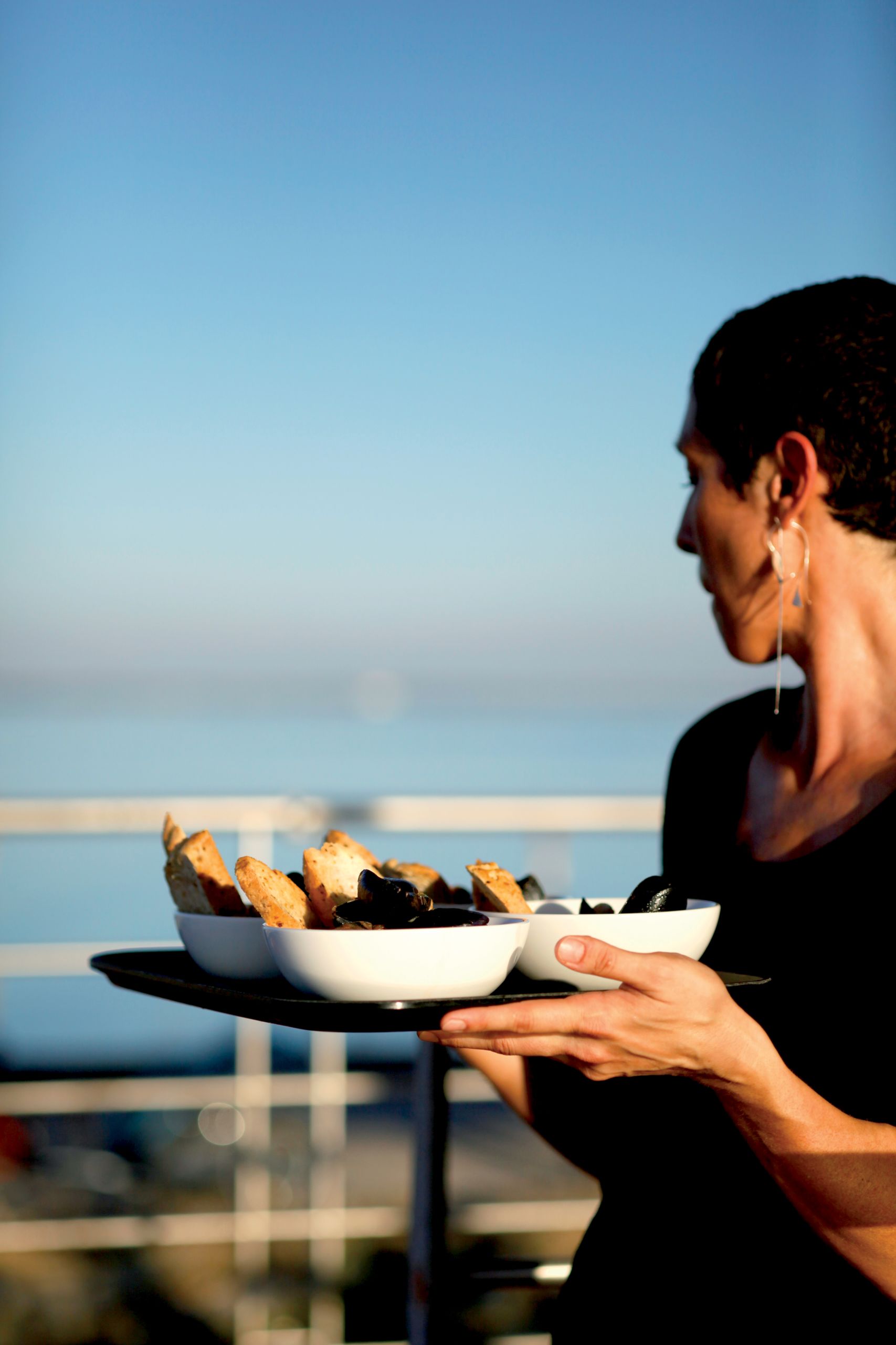 Water on board is drinkable and filtered, and there is a still and sparkling water dispenser (room temperature or cold water) to fill the water bottles