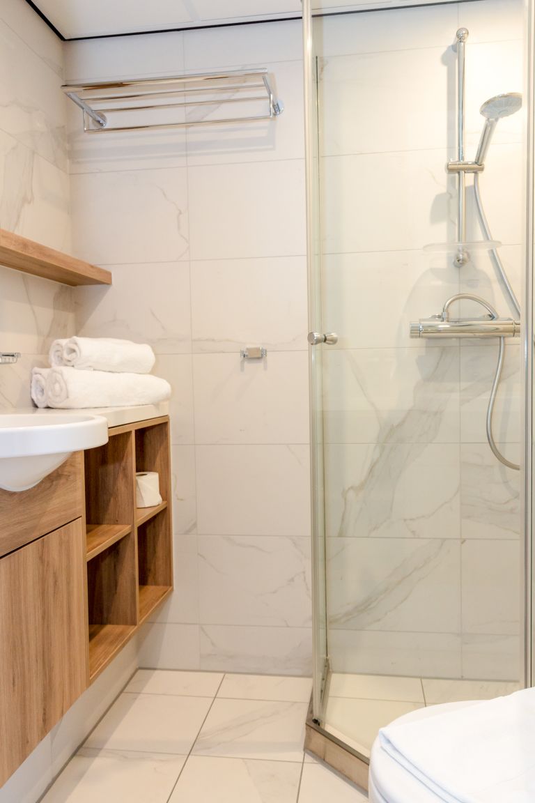 - 9 superior twin cabins (10 sq. meters) with two separate beds, set next to each other as a hotel style bed (200 x 160 cm) and floor-to-ceiling sliding glass doors