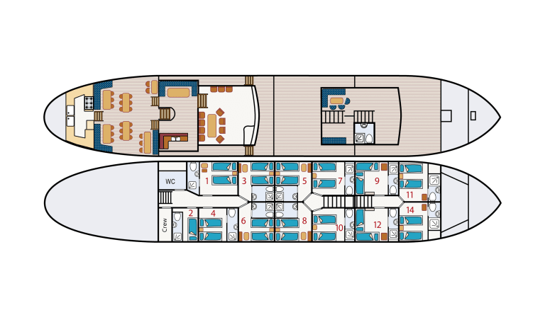 The cabin will be yours for the whole week, so you don’t have to pack and unpack. And if one day you don’t feel like cycling…you can stay on board and enjoy the sailing!