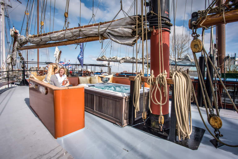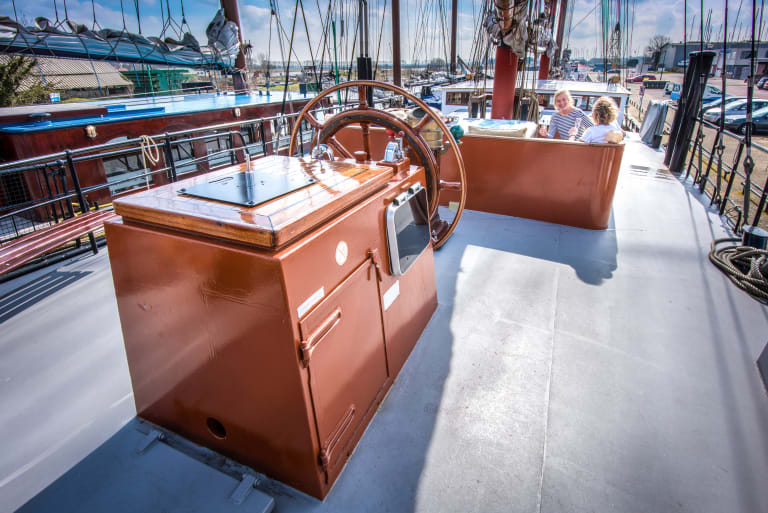 Following the huge renovation works which took place during winter 2023/2024, the Leafde fan Fryslân is now the only four-masted-schooner sailing in Dutch waters. It is bigger and more majestic, with a high comfort level.