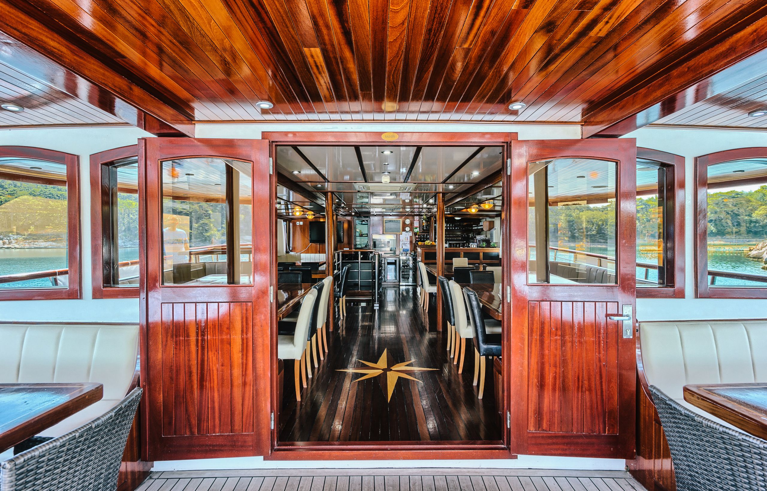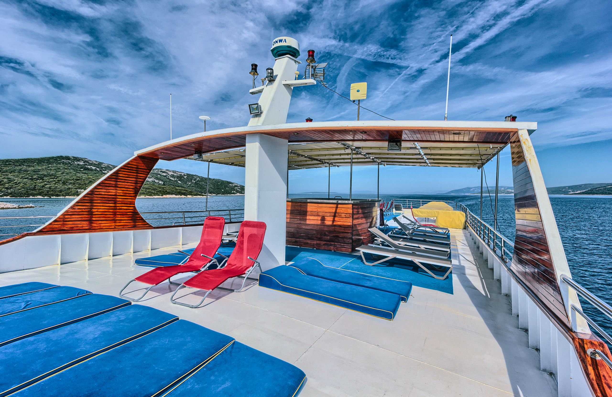 Spacious motor yacht built in 1955 sails along the coast of Kvarner Bay. Enjoy the sea breeze on the outdoor decks, cool off with a dip in the sea or lie down for a relaxing time on the upper deck. The middle deck was built so that you can eat outside.