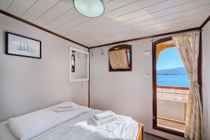 - 6 double/twin cabins on the lower deck with fixed portholes