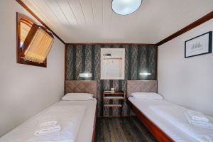 - 11 double/twin cabins on the main or upper deck with large windows that can be opened