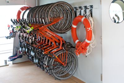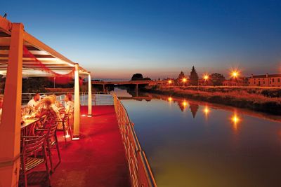 in the evening on the boat! Holidays along rivers, canals and coastal routes, with cycling by day and overnight stays in a floating hotel that follows cyclists stage by stage