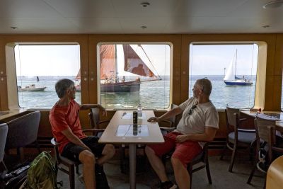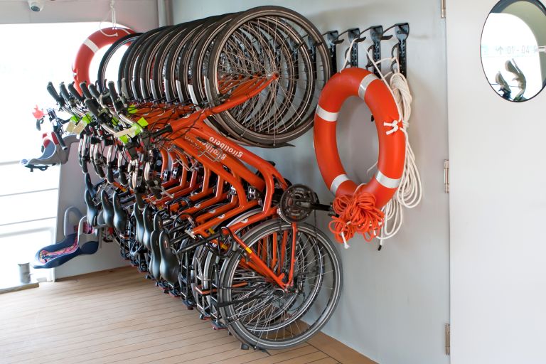 The boat is moored at night and usually moves after breakfast. Some parts of the route take place by boat, to allow easier access to the bike paths or simply to enjoy the sailing.