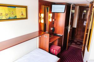 All cabins have a large window that can be partially opened, a private bathroom with complimentary toiletries, air conditioning, a mini safe, a TV, a wardrobe, a small desk and a hairdryer. The cabins are cleaned daily.