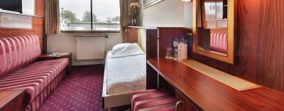 - 20 twin cabins on the lower deck (below deck), about 11 sq. meters with two single beds