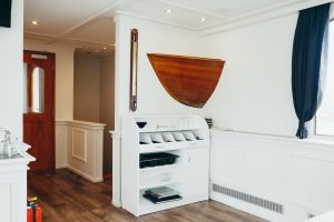 The friendly river boat Fluvius sails between Belgium and Holland. The cozy cabins and common areas make guests feel at home.