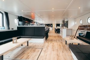 Common areas are located on the upper deck: dining room, bar, lounge with TV and relaxation area. Sun decks, with chairs and tables outside, allow people to enjoy the sailing and have a drink while admiring the scenery. View more details