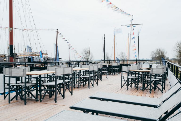 The outdoor terrace, with chairs and tables, allows you to enjoy sailing and admire the scenery. View more details