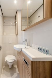 All cabins have en-suite bathroom and shower, an individual climate control system, mini-safe, TV, small wardrobe and hair dryer.