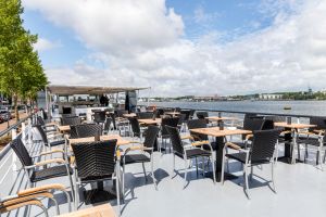 The boat De Nassau sails along Dutch canals and waterways. In the common areas: a welcoming restaurant, a sitting and lounge area with TV and a spacious, partially covered sundeck with chairs and sun loungers to enjoy the scenery while sailing.